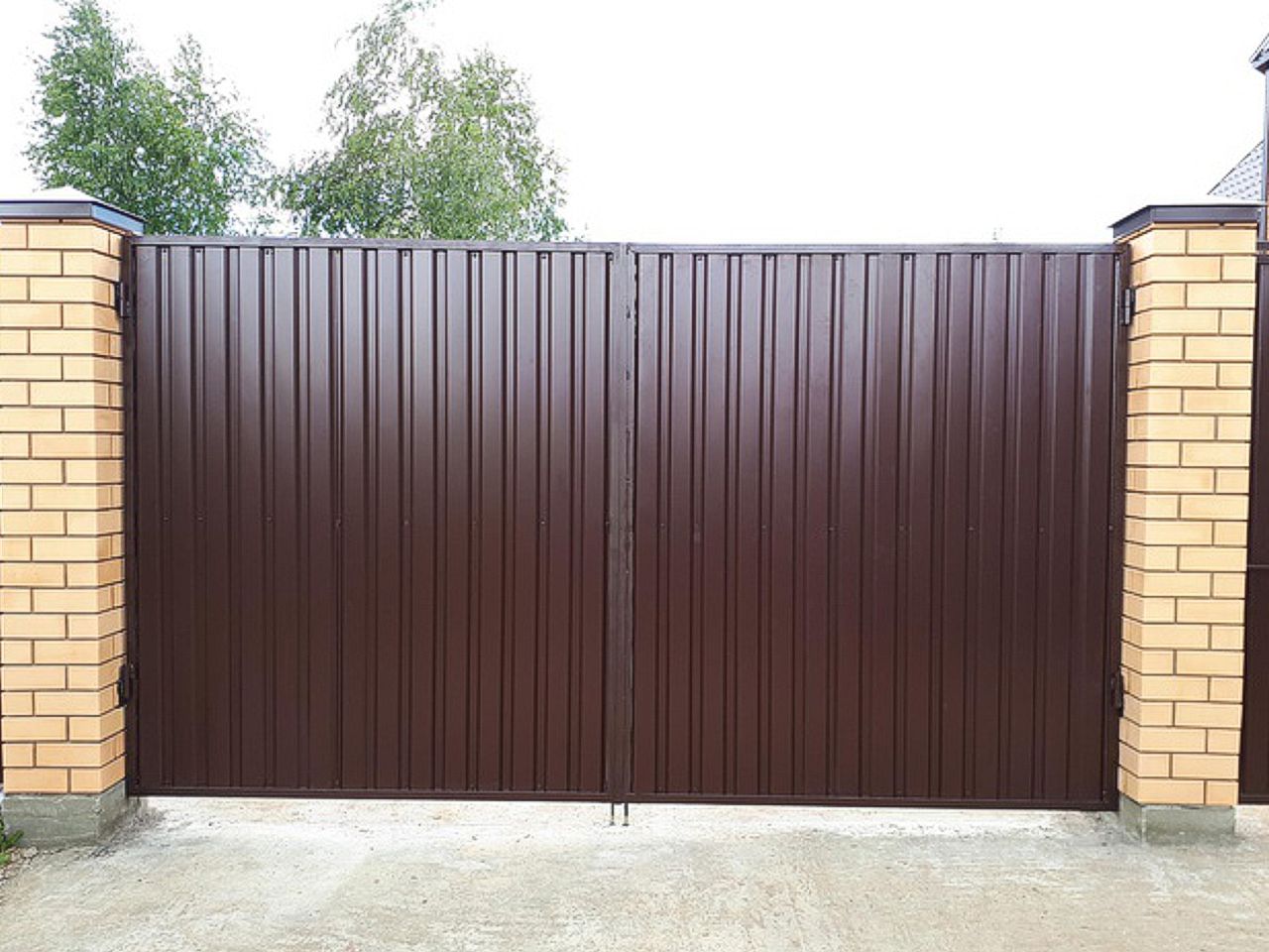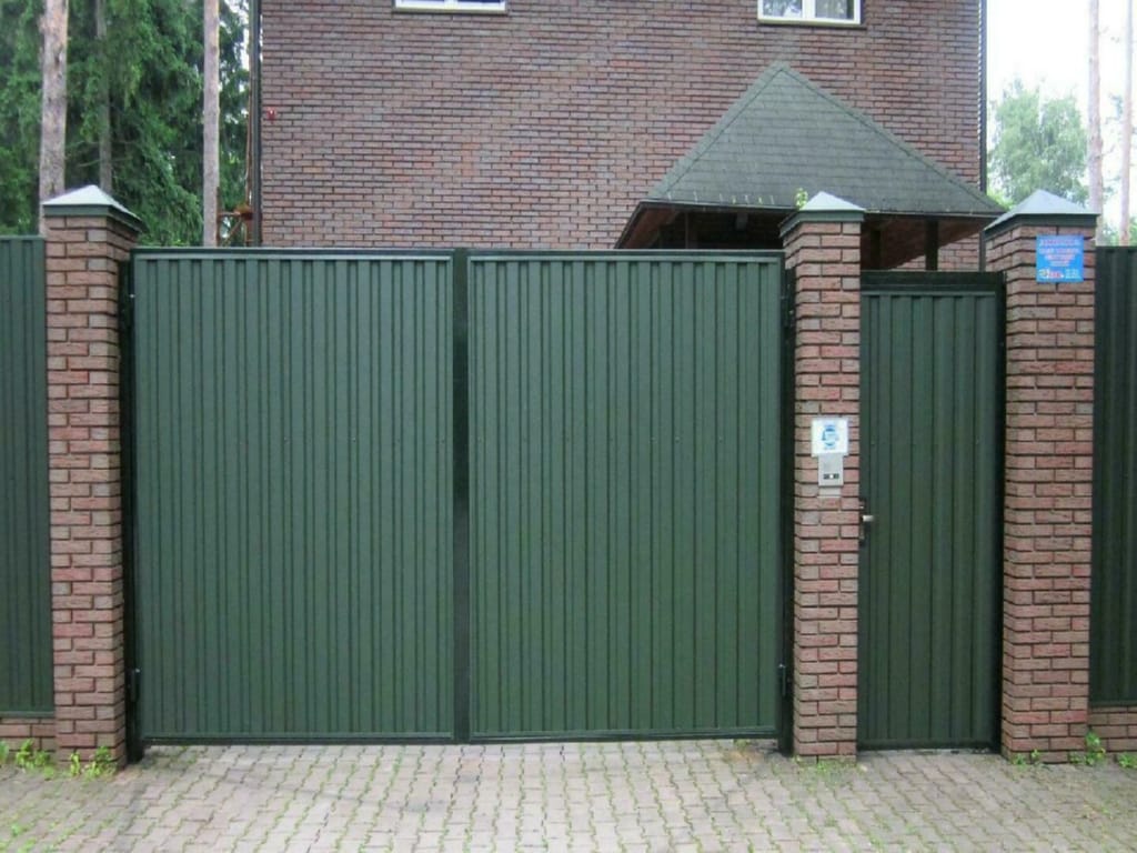 Ворота распашные с дистанционным управлением на бетонном основании